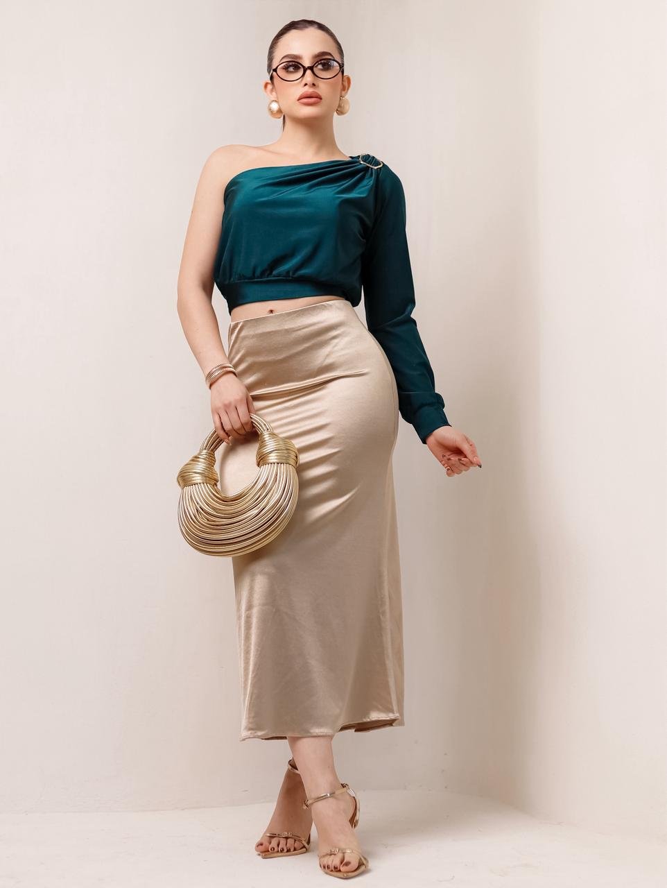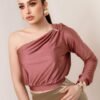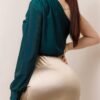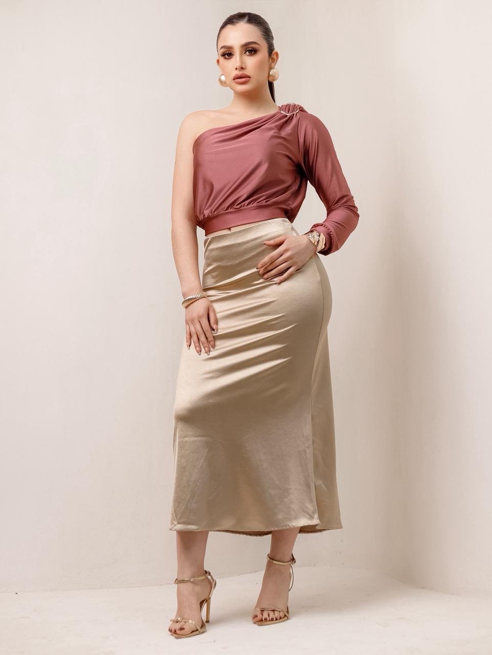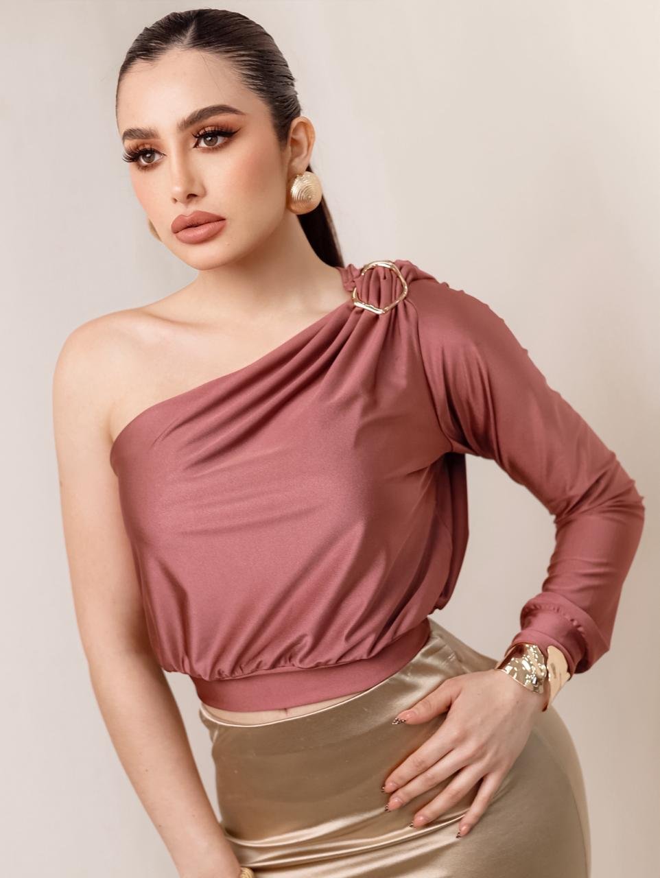 Blusa una manga asimetrica argolla dorada Composición:  Power satin