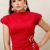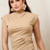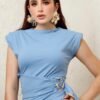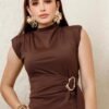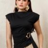 Blusa de hombreras con drapeado lateral y herraje metálico