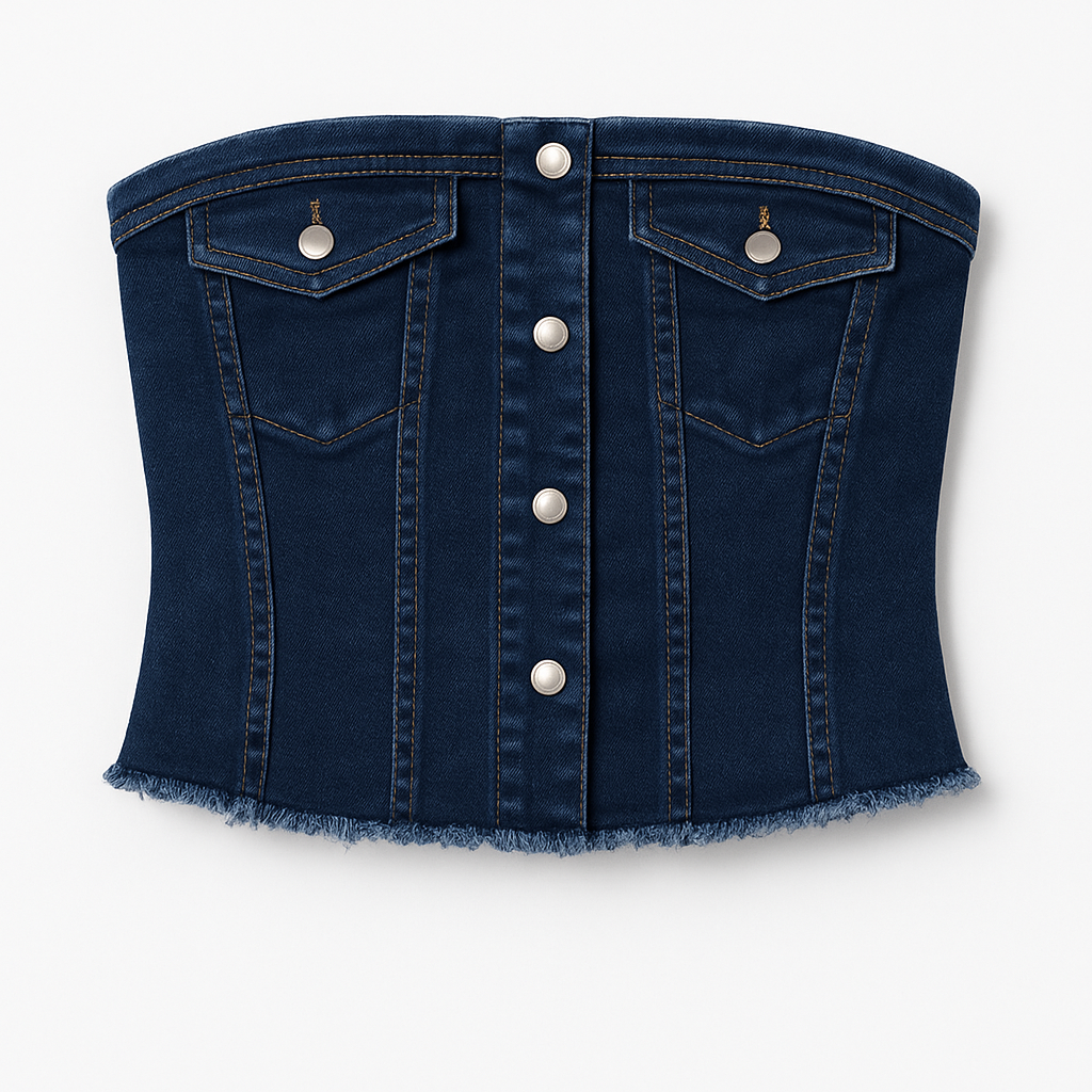 Conjunto mezclilla top/pantalon COMPOSICION: Mezclilla 80 % algodón 18 % poliéster 2 %–3 % spandex (elastano)