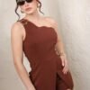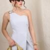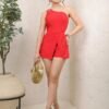 Descripción: Jumper de silueta estructurada con escote asimétrico de un solo hombro y detalle de herraje decorativo. Cuenta con short interno y sobreposición frontal tipo falda que estiliza la figura y aporta un efecto moderno y elegante. La tela Barbie le da una caída suave, estructura ligera y acabado sofisticado, ideal para un look de impacto.