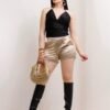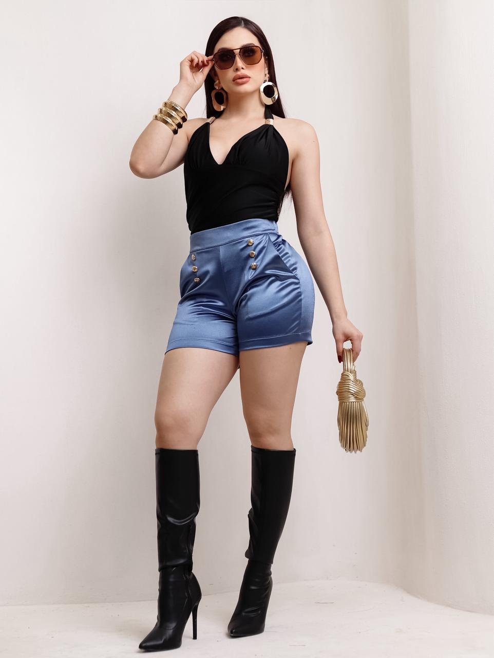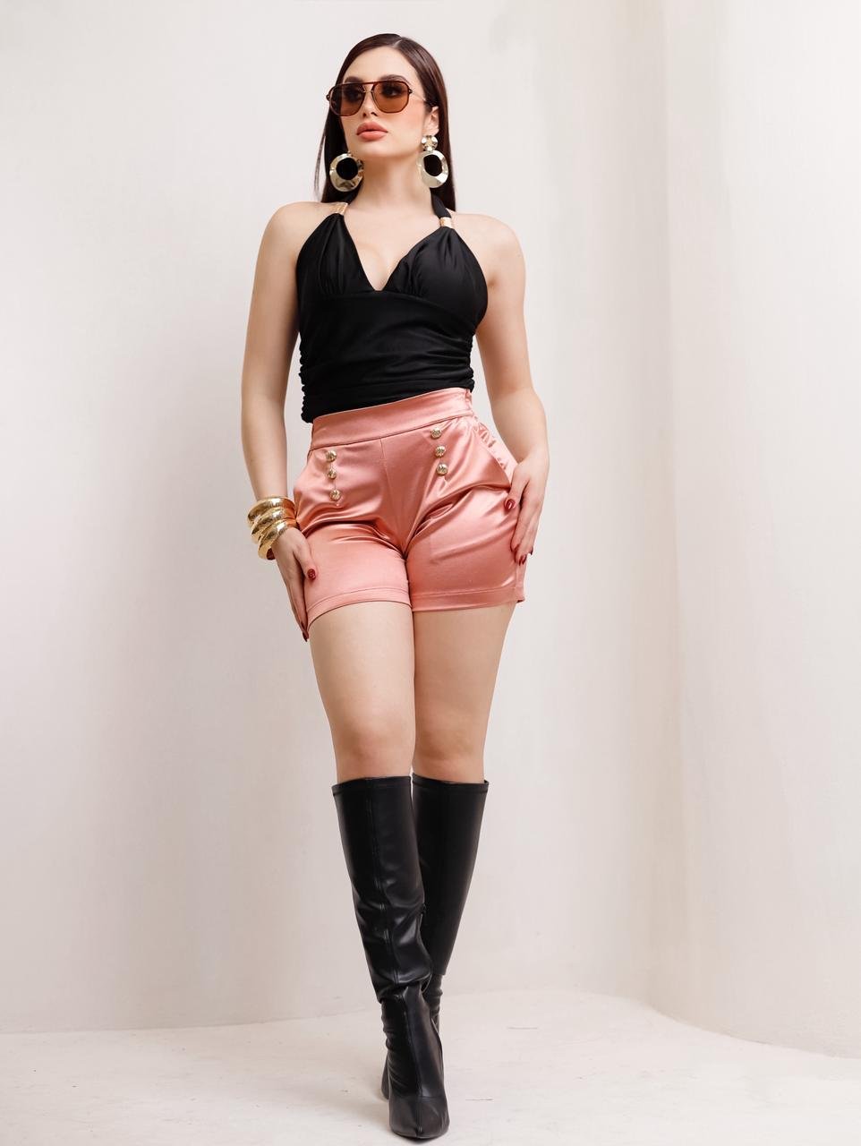 Short satinado botones dorados