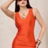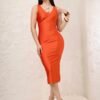 Descripción: Vestido midi de silueta ajustada con escote en V al frente y espalda ligeramente descubierta. Su diseño entallado realza la figura y crea un efecto estilizado y elegante. La tela de licra aporta elasticidad, suavidad y un ajuste cómodo al cuerpo, ideal para looks sofisticados y versátiles.