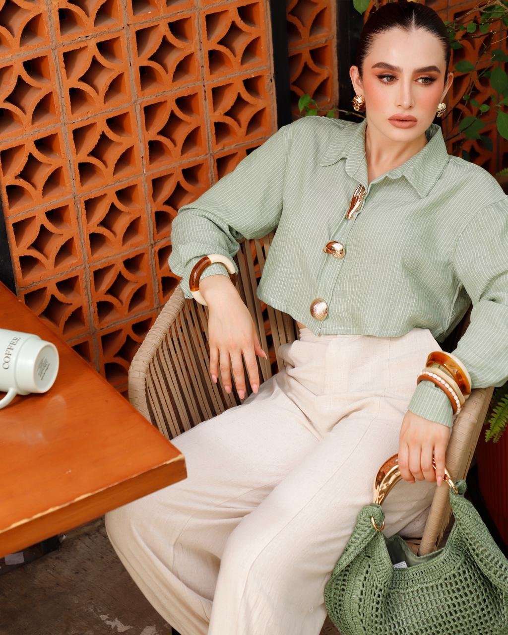 Camisa Cropped Rayas Herrajes Dorados