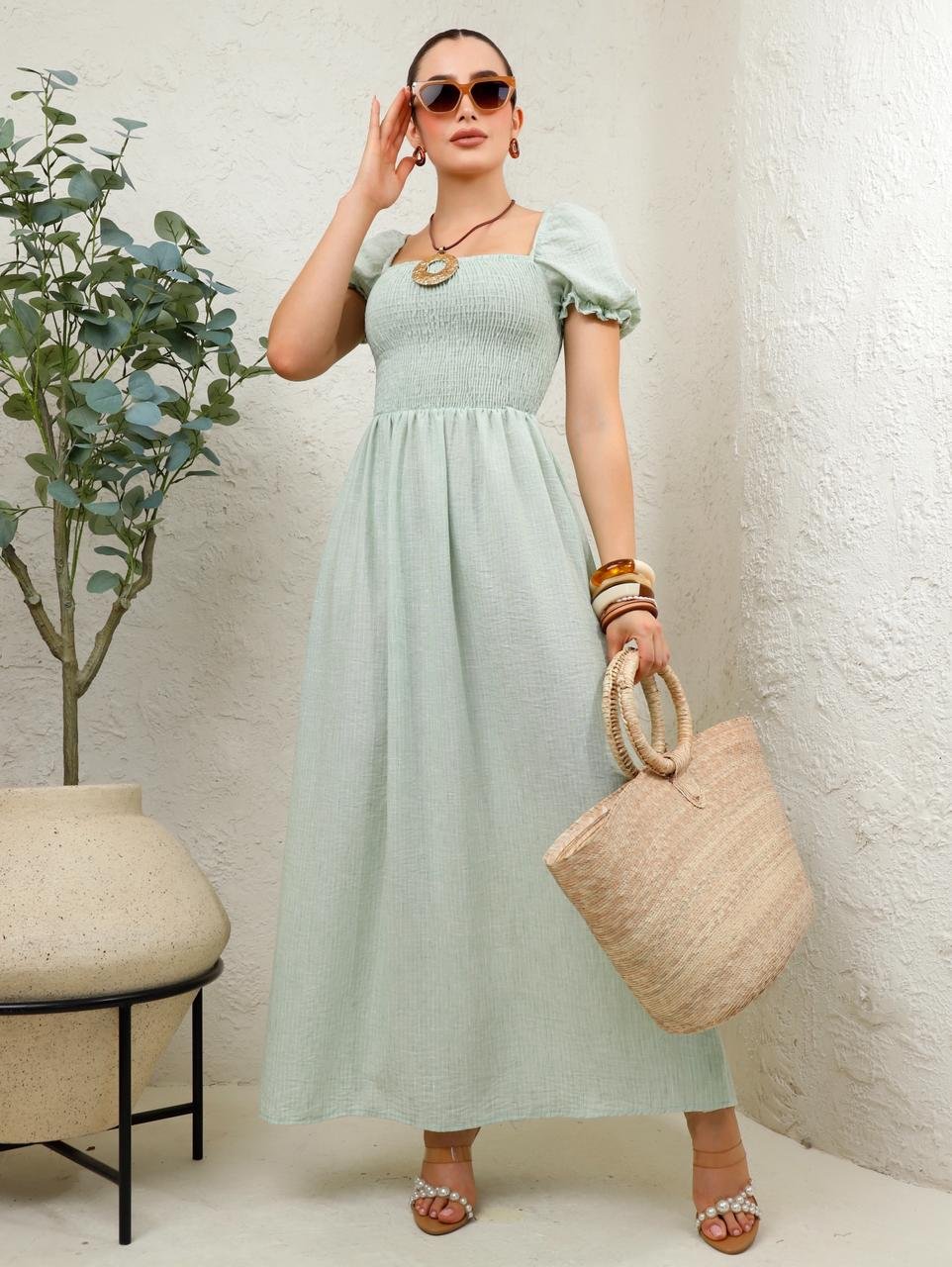 Vestido Midi de Manga Abullonada