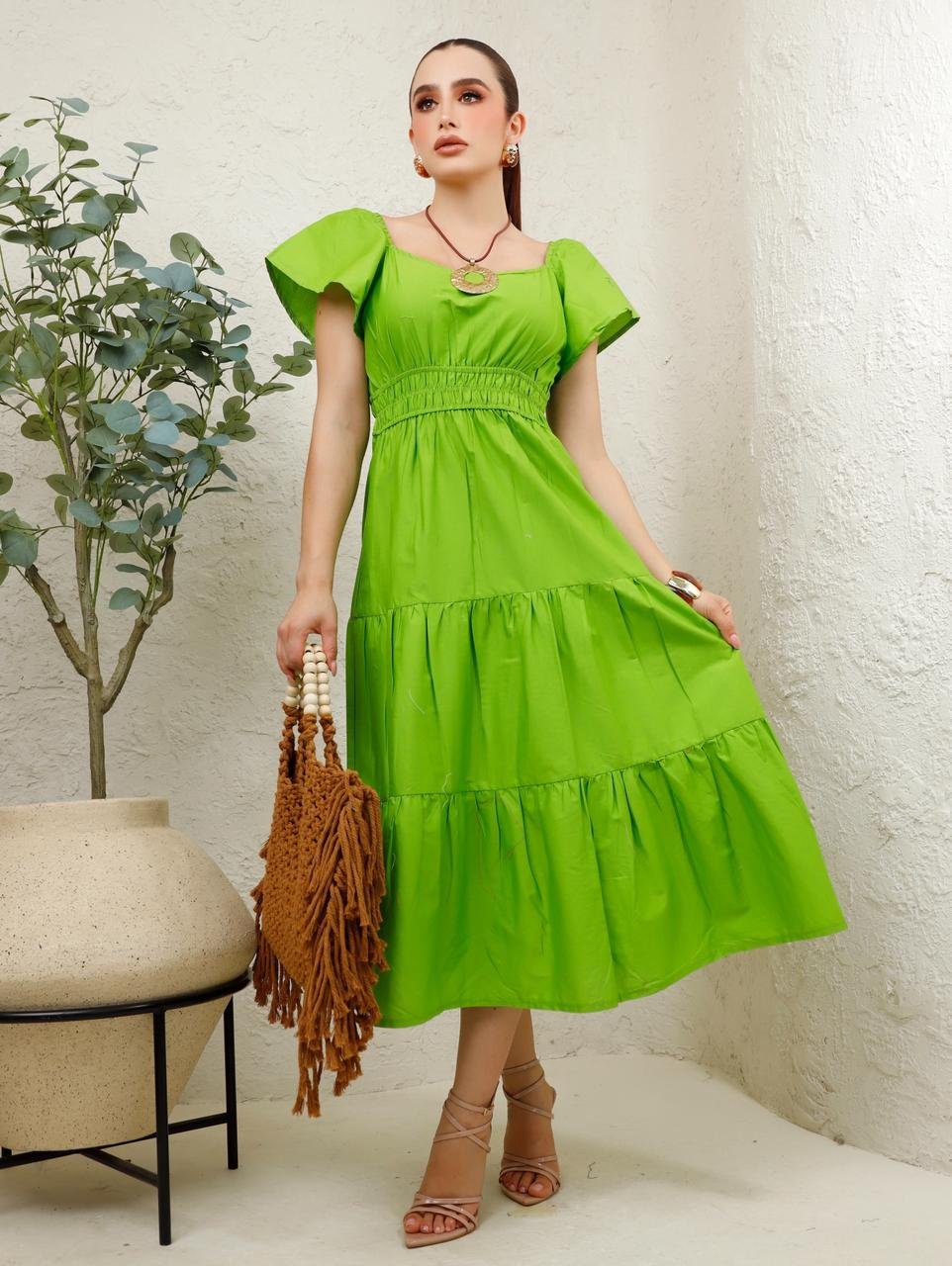 Vestido Midi Verde Lima con Volantes